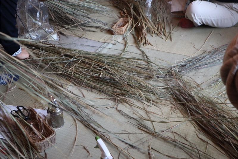 藁はお正月お飾り用の青刈りの藁を用います。